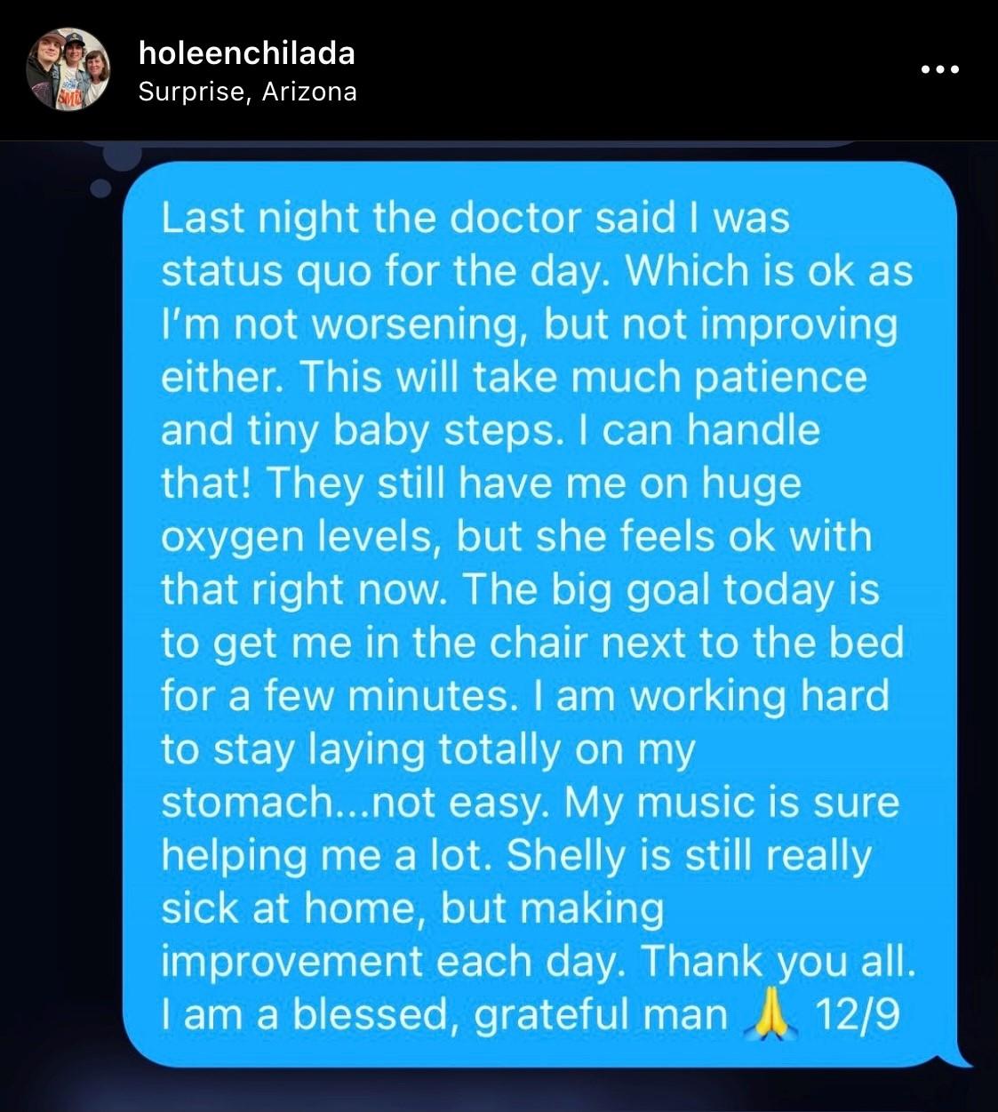 Not only was I on a lot of oxygen, I was on a lot of drugs. For one stretch in particular, around Christmas, I was on Prednisone. This was to aggressively clear infection in my lungs, but a side effect put me closer towards temporary insanity. I said and posted things at times that didn’t make much sense. Although in my racing mind, it made perfect sense. I knew that I was wearing on many people, but I frankly didn’t care, as it was also a survival tactic for me as I was staying occupied rather than going down the rabbit hole of fear, isolation, negativity and depression. I lost some people with my trip towards insanity during this time, but countless people stayed right there with me and helped pull me through. They say this is not only a virus of the lungs, but also a virus of the brain. These are subjects I look forward to digging deeper into in my next book.