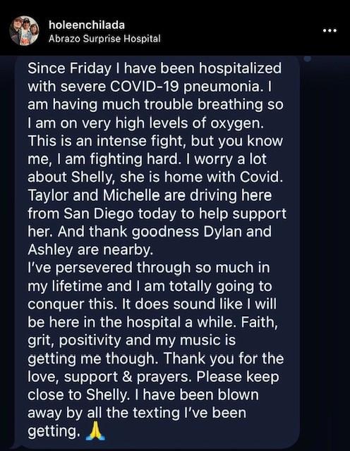 Shelly brought those items to me and then went home. I was worried about her, as she was also sick from the virus. But my biggest concern was the fact that she has a traumatic brain injury from a freak accident nine years ago, so I have been her caregiver ever since. There’s many things that she no longer can do on her own, so my mind was focused on getting well quickly so I could get back home and take care of her.